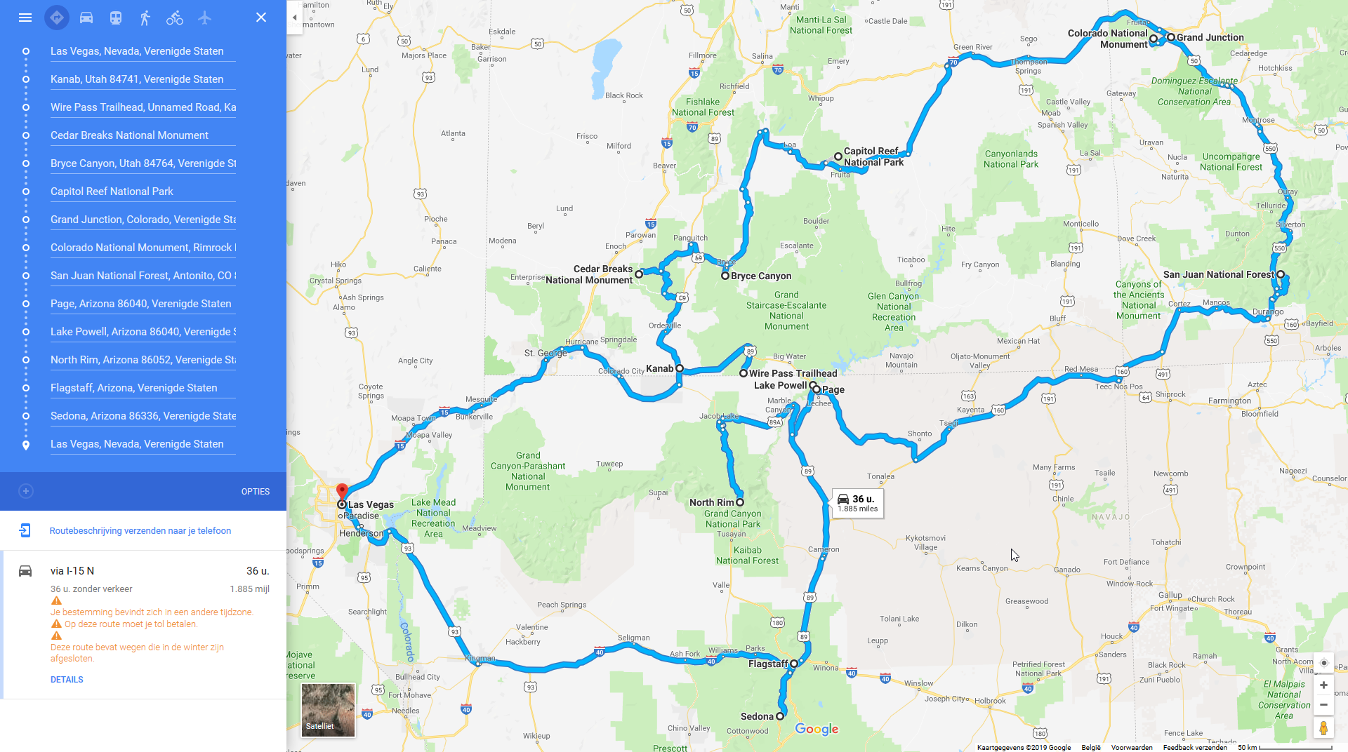 Nationaal parken / natuurgebieden in de “Grand Circle”: